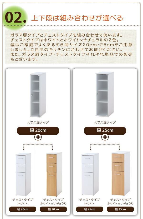 キッチンすき間収納ラック ガラス扉 幅20cm
